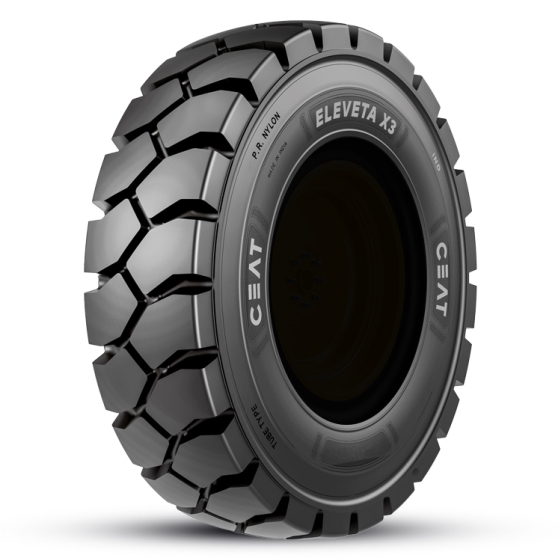 The CEAT Eleveta X3 is built for tough material handling jobs. Its deep, non-directional tread delivers long-lasting traction and performance. A strong center tie bar helps reduce uneven wear, while extra-thick sidewalls improve stability and protect against impact damage. The built-in rim guard also helps prevent wheel scuffing and flange damage, giving you a reliable tyre that keeps your operation moving.